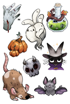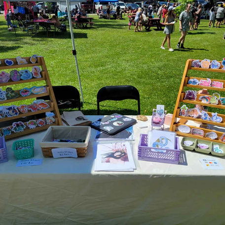 A snippet of my sticker catalogue with my best selling designs I've made myself and sold at several in-person markets and cons as well as on my website